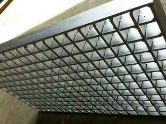 3、扁钢间距为60mm,横杆间距为50mm的钢格板是专为采矿业的应用而开发的品种,它解决了矿物溅落在板面上的难题,常指定用于采矿业的加工厂、转运站、破碎系统的板面。