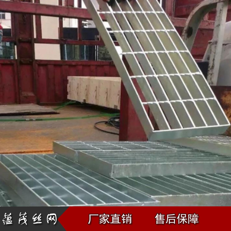 热镀锌钢格栅板是用扁钢按照一定的间距和横杆(扭绞方钢、方钢、圆钢、扁钢等)进行交叉排列,并焊接成中间带有方形格子的一种钢铁制品而后再将其通过热浸锌防腐处理的一种深加工钢铁制品。由于热镀锌钢格栅板具有成本低且防腐效果较好的双重优点,所以工业上采用钢格板时通常都采用热镀锌钢格栅板。