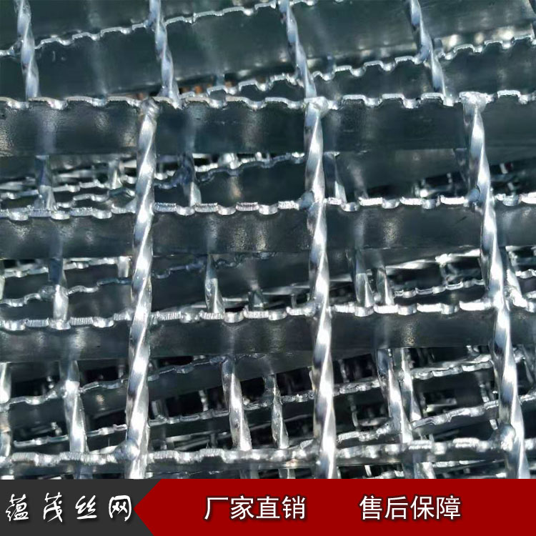 防滑钢格栅板也叫锯齿形钢格栅板由一面是锯齿状的扁钢焊接而成,或者是锯齿形的扁钢和锯齿形的扁钢交叉焊接而成。除具有普通钢格板的特点和用途以外还具有较强的防滑能力,尤其适用于潮湿、滑腻的地方,海上采油平台等。