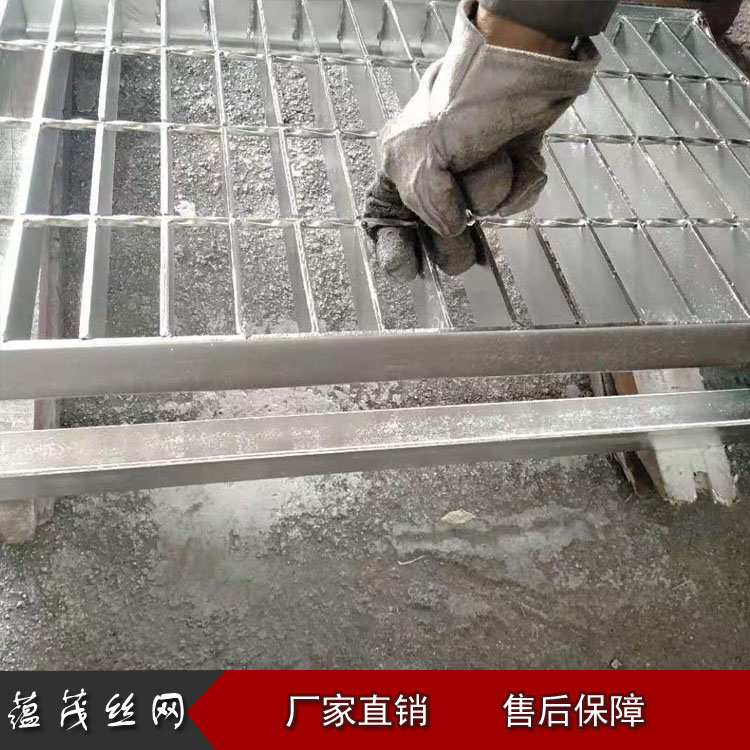包边选用焊高不小于负载扁钢厚度的单面贴角焊,焊缝长度不得小于负载扁钢厚度的4倍。在包边板不接受荷载的情况下,允许间隔4根负载扁钢焊接一处,但距离不得大于180mm。在包边板接受荷载的情况下,不允许间隔焊接,并且有必要满焊。楼梯踏步板的端边板有必要单面满焊。与负载扁钢同向的包边板,有必要与每一根横杆焊接。钢格板中的切断、开孔等于或大于180mm的,应作包边处理。楼梯踏步板如有前沿包边护板,有必要贯穿全部踏步。