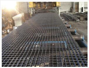 6)待梁完全固化,可铺设洗车行排水板,可按切割好的尺寸,也可整板铺设,并用M扣件和内膨胀螺丝固定,每张相邻的玻璃钢格栅板之间可用C型扣件固定,玻璃钢格栅分两面,可滑面朝上也可粗糙面朝上。